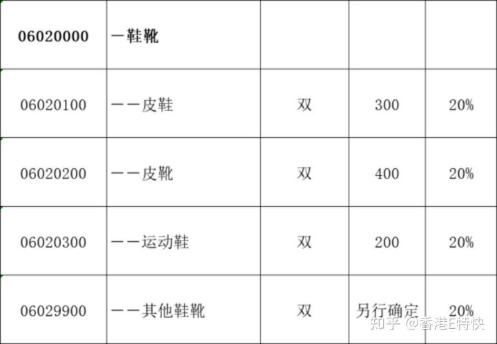 我們看看完稅價格表,我們網站價格板塊都有完稅價格下載鏈接,完整excel表格可以自助下載。下面我們以鞋子為例,給大家大概講解一下。
